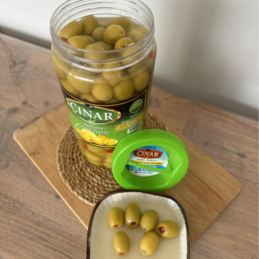 * 1. Kalite Biberli Yeşil zeytinimiz. * Domat zeytinden * Orta Tuz seviyesi * Lezzeti yüksek