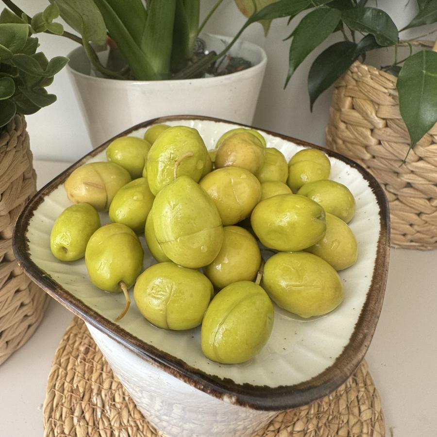 Doğal Köy kırma . Yeşil zeytin.